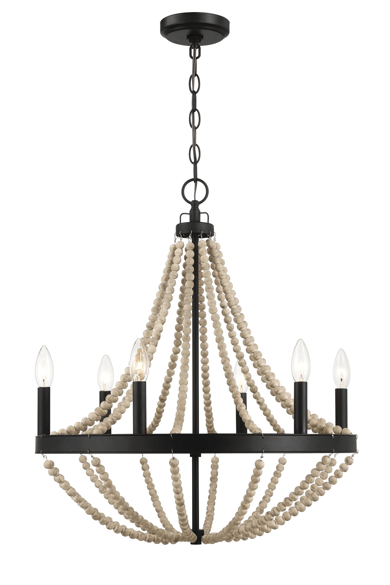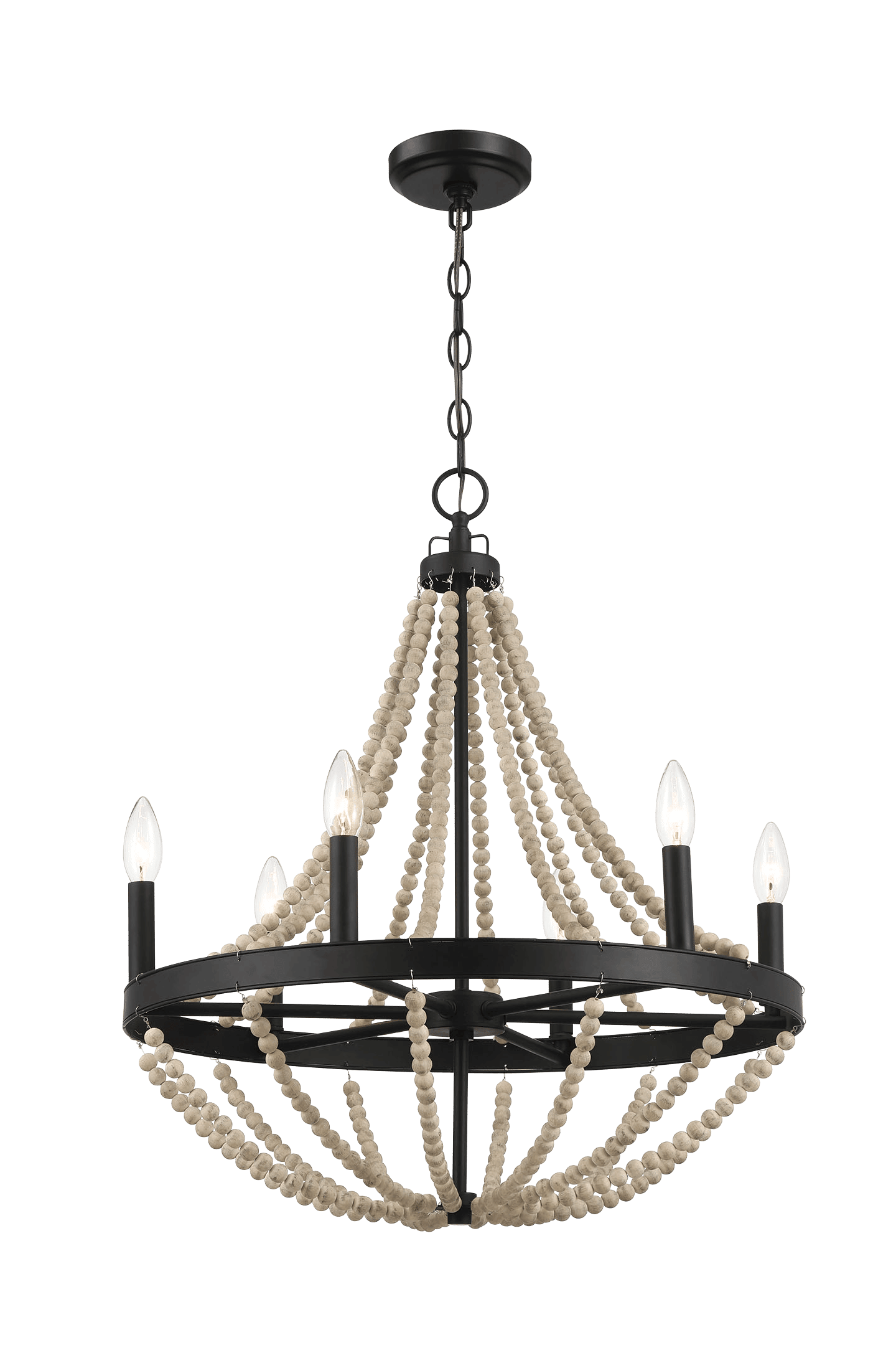 Home > Starry Wood Chandelier Farmhouse Six Candle Light Wood Beaded Black Pendant Light for Dining Room
