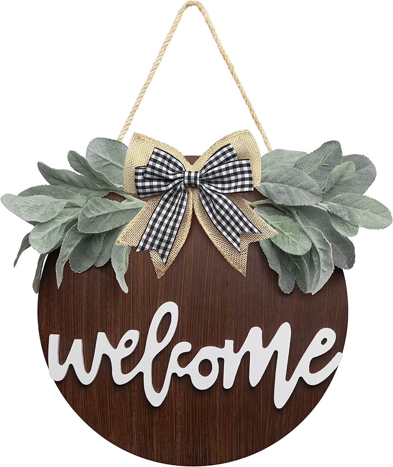 Home > Welcome Wreath Sign for Front Door Porch Decor Farmhouse Front Door Wreath Rustic Style - Round Hanging Spring Summer Christmas Decoration for Home In