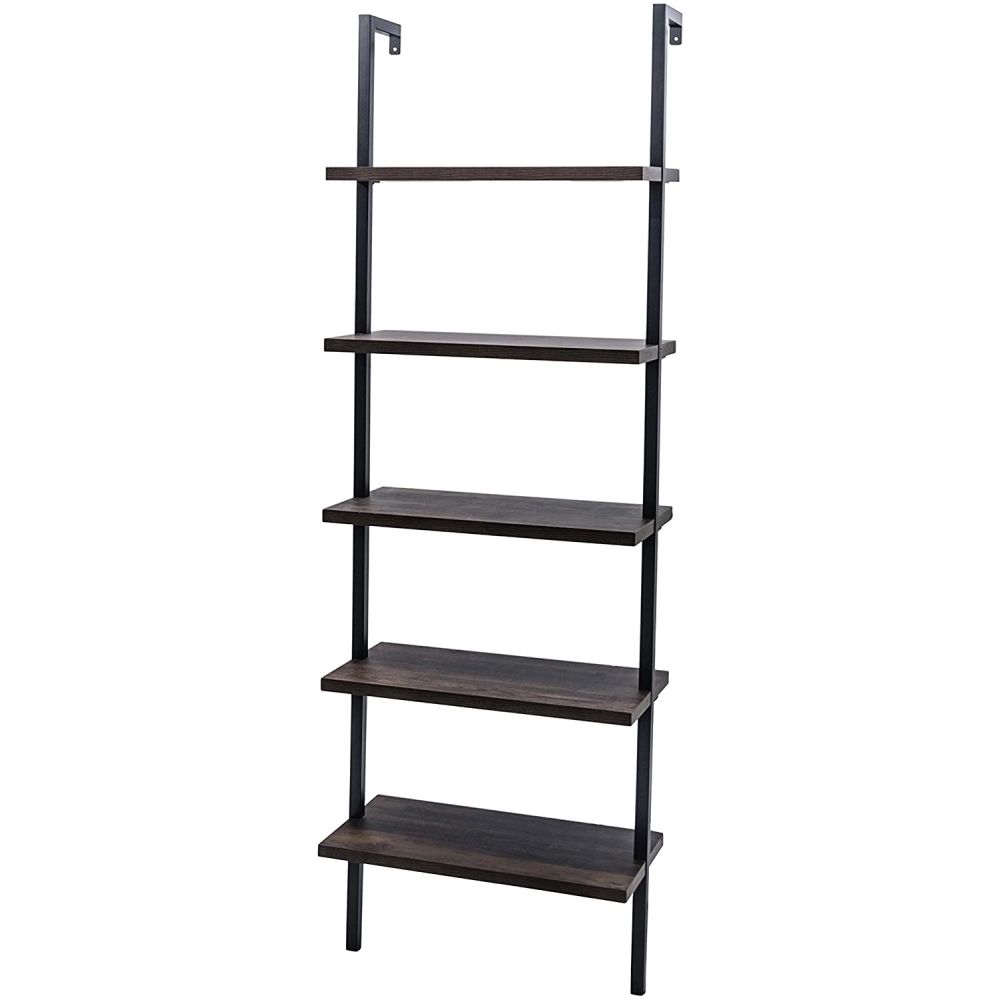 Home > 5-Shelf Wood Ladder Bookcase with Metal Frame Industrial 5-Tier Modern Ladder Shelf