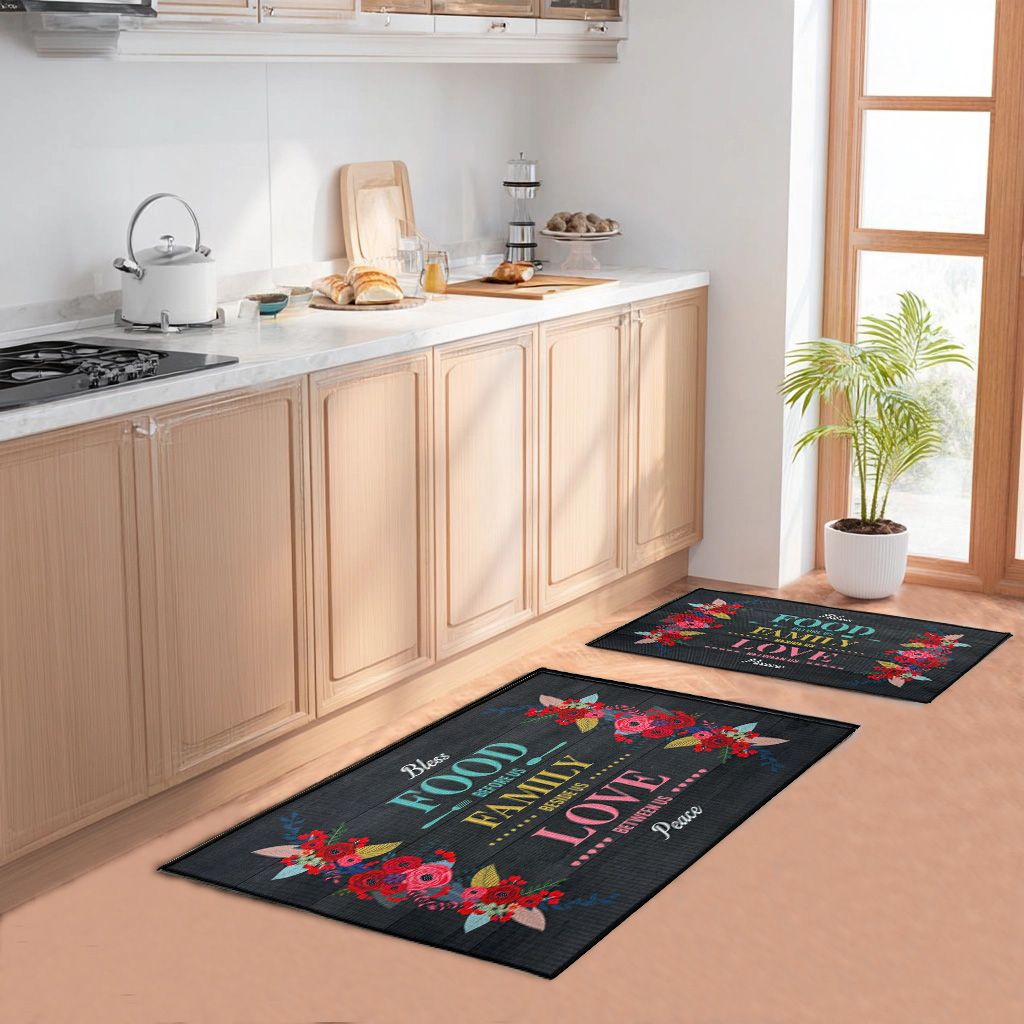 1.Printed Absorbent & Non-Slip Door Mat - Durable Polyester Carpet with "Kitchen" Design, Ideal for Bathrooms, Hallways, Living Rooms, Bedrooms (Decorative Use) & Laundry Rooms (Heavy-Duty Floor Mat)