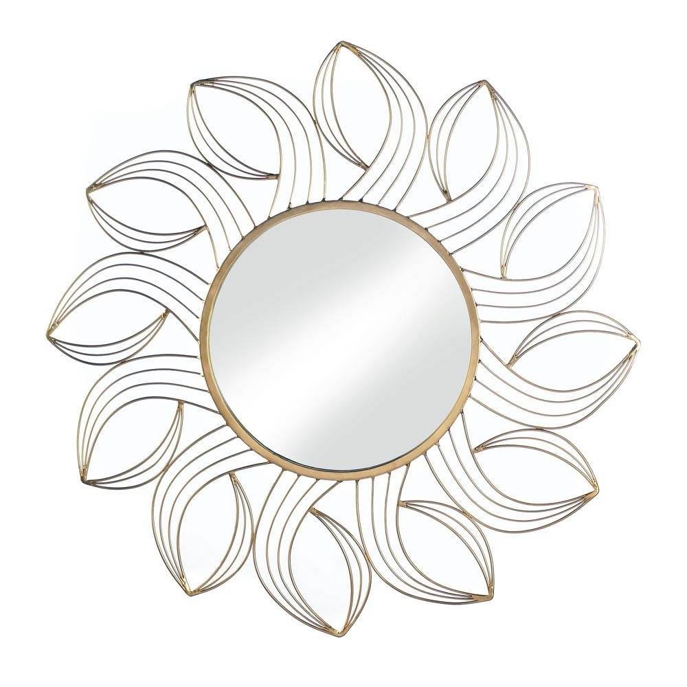 • Round out your plain wall with this beautiful Golden Petals Wall Mirror. Centered in the middle of the golden petal flourishes is a gorgeous reflective mirror waiting to adorn your home. A great housewarming gift or personal home decor piece!